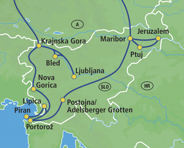 Am Vormittag entdecken Sie Ljubljana: Barocke Fassaden, verspielte Brücken, der Fluss Ljubljanica und das Schloss auf dem Hügel formen das unverwechselbare Stadtbild. Nach Freizeit für eigene Erkundungen geht es weiter nach Novo Mesto. Bei einer fröhlichen Floßfahrt auf der Krka lernen Sie Stadt und Geschichte aus einer ungewöhnlichen Perspektive kennen. Musik, kleine Kostproben regionaler Spezialitäten und der typische Cvicek-Wein machen diesen Ausflug zu einem besonderen Erlebnis. Abendessen und Übernachtung im ELEGANS Hotel Brdo.